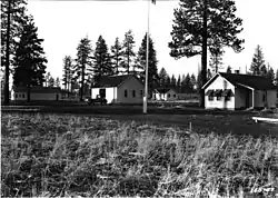 From 1934 to 1938, a Civilian Conservation Corps camp was located adjacent to the ranger station. The existing guard station buildings were constructed by Civilian Conservation Corps work crews during that time. The Civilian Conservation Corps built a total of seven buildings for the ranger station compound including ranger residences, a warehouse, maintenance shop, and a gas station. Six of the seven structures remain today. The seventh building was moved to another guard station after the ranger station was closed.[3]