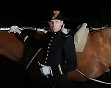 The Cadre Noir (French: [kadʁ nwaʁ]; English: Black Cadre) is a corps of écuyers, or instructors, at the French military riding academy École Nationale d'Équitation at Saumur in western France, founded in Versailles before transferring to Saumur in 1828. During the Second World War, the premises of the school were occupied by German forces and the remaining instructors and horses were moved temporarily to Fontainebleau. The school today also performs as an equestrian display team. Its name comes from the black uniforms that are still in use today. It is one of the "Big Four", the most prestigious classical riding academies in the world.[1]