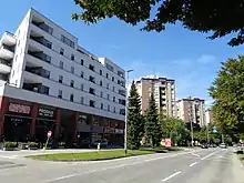 At the central square there is a library, a theater, a cinema, a large shopping center and a few confectioners' shops and restaurants. Other businesses in the town center are mostly clothing stores, bookshops, electronics stores and finance companies. A hospital and the central bus station are located only a few steps from town centre. The largest hotel in Čakovec is located across the park, about 300–400 meters from the central square, and there is also a smaller one in close proximity of the main square.