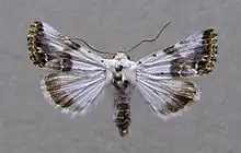 The wingspan is 26–31 mm. Adults are on wing from April to June and again from July September in two generations per year.