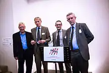 30th anniversary featuring from left to right: Des Wilson (founder), Neil McIntosh (chair until 2014), Russell Levy (chair) and Maurice Frankel (director).