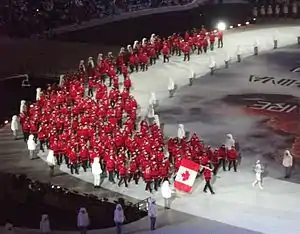 Flag bearers | Hayley Wickenheiser (opening ceremony)[1][2] Kaillie Humphries and Heather Moyse (closing ceremony)[3][4] |