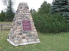 On Harkin's recommendation, the government created the Advisory Board for Historic Site Preservation (later called the Historic Sites and Monuments Board of Canada) in 1919 in order to advise the Minister on a new program of National Historic Sites.[9] Brigadier General Ernest Alexander Cruikshank, a noted authority on the War of 1812 and the history of Ontario, was chosen as the Board's first chairman, a post he held for twenty years.[19] The first place designated and plaqued under the new program was the "Cliff Site" in Port Dover, Ontario, where two priests claimed sovereignty over the Lake Erie region for Louis XIV of France in 1670.[20]
