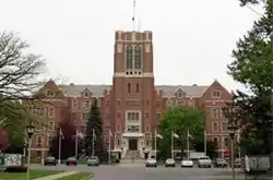 Canandaigua Veterans Hospital Historic District is a historic hospital and national historic district located at Canandaigua in Ontario County, New York. The district includes 29 contributing buildings, 2 contributing sites, and 4 contributing structures. They were built or utilized during the period 1931 to 1950. The Veterans Administration opened the facility in 1933, as a veteran's neuropsychiatric hospital. The original hospital buildings built in 1932, include the main building, kitchen / dining hall, acute building, continued treatment building, recreation building, laundry, warehouse, boiler plant, attendant's quarters, sewage pump house, garage, and gatehouse. The buildings are constructed of brick and feature crenellation, gabled parapets, half-timbering, steeply gabled roofs, and Tudor arches reflective of the Tudor Revival and Jacobethan Revival styles.[2]