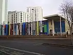 Cardiff Central Library (now Cardiff Central Library Hub) (Welsh: Llyfrgell Ganolog Caerdydd) is the main library in the city centre of Cardiff, Wales. It offers a public library service and is open six days a week. Four buildings have been named as such, with the newest building opening on 14 March 2009 and officially being opened a few months later on 18 June 2009 by the Manic Street Preachers.[1] The first Cardiff library was opened in 1861 as the Cardiff Free Library, later expanded and known as the Cardiff Free Library, Museum and Schools for Science and Art.
