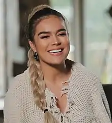In January 2017, Karol G joined the reality talent show Pequeños Gigantes USA (Little Giants) as a judge, offering advice to children 6–11 years of age who performed on the show.[10] In February, she released the breakup song "A Ella" (To Her), a song inspired by real-life events. In May, her collaboration with Puerto Rican trap artist Bad Bunny "Ahora Me Llama" (Now He Calls Me) became regarded as her breakthrough hit.[9][8][6] The video garnered more than one billion views on YouTube and reached #10 on the Billboard Hot Latin Songs chart.[11] The song was described by Marty Preciado of NPR as a "bass-heavy, unapologetic trap anthem to the power of femininity, soiled in hi-hats and heavy sub-bass [that] challenges hegemonic masculinity, singing about respect, love and sex-positive decisions."[12] According to Ecleen Luzmila Caraballo, of Rolling Stone, "it was then that Giraldo joined the increasingly-global pop urbano wave and established herself as one of its most standout acts".[6] "Ahora Me Llama" was listed on "Alt. Latino's Favorites: The Songs of 2017" as one of the best Latin songs of 2017.[12]
