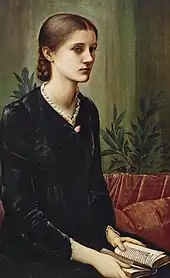 In 1884, Edward Burne-Jones painted her portrait and it was exhibited in the New Gallery in London.[5][note 1] According to her biographer, Gottardo Pallastrelli, she appears melancholy, dreamy and hesitant – and pensive – likening the painting to Piero di Cosimo's Maria Maddalena.[7] In London, very unusually for that time, she wore long oriental dresses, unlike the manner of American heiresses looking for an aristocratic husband.[3]