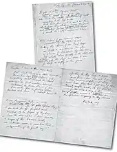 In 1894, Russell had written to his fiancée Alys Pearsall Smith that, hearing of Caroline's impending divorce, he had always regretted Caroline's marriage and that "he couldn't help feeling a sort of joy to think she should get rid of him and start afresh". He supposed she married him for ambition rather than love.[25] In Russell's 1967 autobiography, he also said that "later she seemed an unmitigated bore" – it may be that his sadness at her marriage still hurt.[11][12]