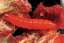 The larvae feed on Rosa species. They feed inside the fruit of their host plant. They eject small frass packages which can be found on the exterior of the rose hip.[3]