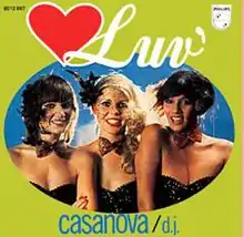 "Casanova" is the sixth single by the Dutch girl group Luv', released in the spring of 1979 by Philips Records. This song appears on the formation's second album, Lots Of Luv', and was a Top 10 single in a large part of Continental Europe, maintaining Luv's position as the best Dutch export act of 1979.[1][2]