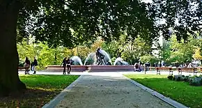 On 23 July 1904, on the northern edge of the park close to Freedom Square, the monumental foutain "The Deluge" was inaugurated. It is a work by the Berlin sculptor Ferdinand Lepcke. The masterpiece sculpture has been integrated and connected with the surrounding park in a seamless manner.