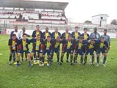 The home kit is all yellow, with details in red and blue in the shirt and in the shorts. The away kit is all blue.[1]