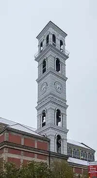 The cathedral's construction sparked some controversy in Muslim circles where it was seen as outsized considering the small number of Catholics in the area.[9][10] Upon the cathedral's completion, the Roman Catholic Diocese of Prizren-Pristina moved from Prizren to Pristina.[4] The cathedral is one of Pristina's tallest buildings.[11]