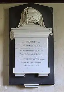 William gained an appointment as Gentleman Usher to George IV in 1822 (rendering him immune to arrest for debt) and left Britain to escape his creditors around 1823. Catherine implied in a letter to her sisters that her husband had given her a venereal disease.[4] Whilst on the continent he began a relationship with Helena Paterson Bligh (d. 7 April 1869), the wife of Captain Thomas Bligh of the Coldstream Guards, abandoning Catherine entirely.[4] She died at age 35 in Richmond, Surrey, leaving their children, William, James and Victoria, in the care of her two unmarried sisters, Dorothy and Emma. She had just received a letter from William, whose contents apparently caused her to have some form of seizure. William had only had a life interest in Catherine's property, although he was responsible for the demolition of Wanstead House in 1825 to pay off some of his debts and also unsuccessfully tried to gain custody of their eldest child William, on whom Catherine's fortune had devolved.[4]