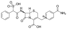 • 4-(aminocarbonyl)-1-[((6R,7R)-2-carboxy-8-oxo-7-{[phenyl(sulfo)acetyl]amino}-5-thia-1-azabicyclo[4.2.0]oct-2-en-3-yl)methyl]pyridinium