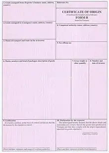 25. "What is a Certificate of Origin? | Certificates of Origin | Trade Facilitation | Chamber Services | ICC - International Chamber of Commerce". www.iccwbo.org. Archived from the original on 2015-05-23. Retrieved 2015-06-04.