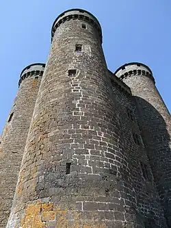 The castle, built of reddish basalt, has been described as "one of the most remarkable castles in Upper Auvergne".[3] It is located in a strategic position on the Tournemire promontory and dominates the rich landscape of the Doire valley with its four tall towers, 40 metres (130 ft).[4]