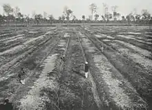 In 1868, Charles Frederick Amery, an officer in the Indian Forestry Commission, had an idea of employing a trench and ridge system. Ribbentrop adopted the system making the plantation a "sylvicultural and financial success".[14] The plantation reaped its first successful harvest in 1888 from a second crop rotation.[14] The site was soon identified as a sustainable source for timber, primarily serving the North-Western railway network.