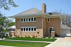 The Charles F. and Ruth Chase House, also known as the Judge Whitmore House, is a historic residence located in Atlantic, Iowa, United States. Charles and Ruth Chase established a local newspaper, the Atlantic News-Telegraph. Their son, Edwin Percy Chase, joined his father in the business and won the Pulitzer Prize for the best editorial of 1933. Ruth Chase bought the property the house was built on in 1914 from Dr. F. W. Porterfield for $2,500.[2] The Porterfield house was torn down and this home was completed the following year. It was designed by Creston, Iowa architect Clarence Yule, and is based upon the architectural style made famous by the architect Frank Lloyd Wright.[3] The two-story, stucco-on-frame, Prairie School dwelling features a hipped roof, enclosed front porch, wide overhanging eaves, ribbons of casement windows on both floors of the front and back elevations, and a full basement. It was listed on the National Register of Historic Places in 1999.[1]