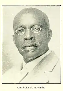 Charles Norfleet Hunter, more commonly known as Charles N. Hunter (January 9, ca. 1852 – September 4, 1931), was an American educator, journalist, and historian.[1] Hunter actively engaged in several late nineteenth-century reform movements. In the 1870s, he participated in the Temperance movement.[2] Beginning in his twenties, Hunter played a significant role as a teacher or principal at the "Colored Graded Schools" in Durham, Goldsboro, and Raleigh as well as at rural schools in Robeson, Chatham, Cumberland, and Johnston Counties.[3] Hunter also helped lead an initiative to build the Berry O'Kelly Training School (previously known as the Method School) in Method, North Carolina.[4]