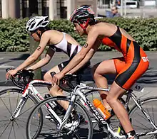 Bonin chasing Jessica Leroux at the Triathlon de Dunkerque, 2010