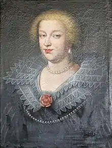 Charlotte des Essarts (1580-1651), was a French noblewoman. She was the mistress to Henry IV of France in 1607–1609. She had two daughters with the king. She was a lady-in-waiting to the queen, Maria de Medici. She participated in many political plots at court.