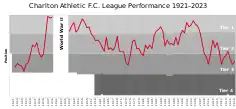 In 1937, Charlton finished runners up in the First Division,[6] in 1938 finished fourth[7] and 1939 finished third.[8] They were the most consistent team in the top flight of English football over the three seasons immediately before World War II.[1] This continued during the war years and they won the Football League War Cup and appeared in finals.