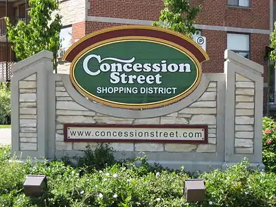 - Concession Street, the oldest settlement area on Hamilton Mountain and once an African-American neighbourhood settled by escaped slaves from the United States who came to the area along the Underground Railroad. Originally known as Stone Road and changed to Concession Street in 1909, it was a separate community from the lower city and known as Mount Hamilton. By 1891 land north of Concession Street were annexed by the city and were serviced with water, sewers and sidewalks. Aberdeen Avenue in the Lower City was originally known as Concession Street.[2]