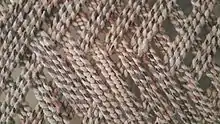 It is mostly used in warm areas: in cold areas, a similar rope bed would be topped (with an insulating palliasse or tick, stuffed with straw, chaff, or down feathers), and possibly hung with curtains.[3][4][5]
