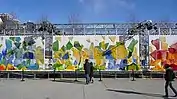 From February 1 through February 29, 2008, Millennium Park hosted a winter celebration called the Museum of Modern Ice.[10] This event featured an exhibition located on the Central Promenade by artist Gordon Halloran entitled Paintings Below Zero.[11][12] The exhibition's centerpiece was an abstract artwork on the surface of four ice panels that measured 95 by 12 feet (29.0 by 3.7 m).[11] In addition to the ice wall painting, Halloran painted the surface of the McCormick Tribune Ice Rink.[13]