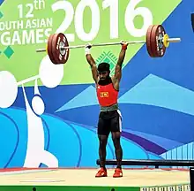 ![]() Chathuranga Lakmal lifts the weight to win silver medal at the 2016 South Asian Games | |||||||||||||||||||||||||||