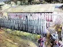 A wooden "great hall" was constructed around the reign of King Alfred the Great (died 899 AD) and the "community at Cheddar" received a special mention in his will.[4] At this time the building served as a minster.[5][6] It was rebuilt around 930 and a chapel and other buildings were added, becoming a royal hunting lodge.[5]