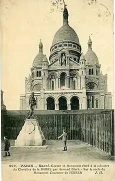 ![]() First statue of the Chevalier de la Barre at the gates of the Sacré-Cœur de Montmartre | |