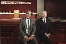 Gerald Ford with Chase before the Conference on Humor and the Presidency held at the Gerald R. Ford Museum in 1986
