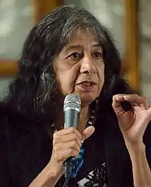 Xicanisma acknowledges Indigenous survival after hundreds of years of colonization and the need to reclaim one's Indigenous roots while also being "committed to the struggle for liberation of all oppressed people", wrote Francesca A. López.[33] Activists like Guillermo Gómez-Peña, issued "a call for a return to the Amerindian roots of most Latinos as well as a call for a strategic alliance to give agency to Native American groups."[32] This can include one's Indigenous roots from Mexico "as well as those with roots centered in Central and South America," wrote Francisco Rios.[71] Castillo argued that this shift in language was important because "language is the vehicle by which we perceive ourselves in relation to the world".[69]