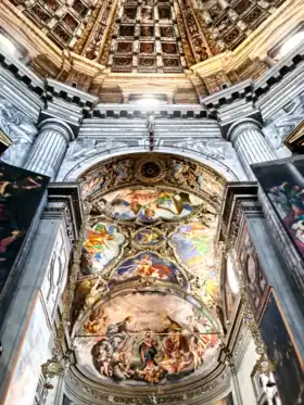 - Paintings depicting events mainly relating to the Passion of Christ by Daniele Crespi on pillars of the cupola: these include a Ecce Homo; a Crucifixion; a Dead Christ supported by an Angel; an Angel displays the Sacra Sindone; a Washing of the Feet; a Raising of the Cross; and Descent from the Cross.[1]