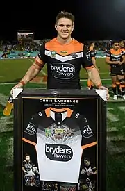 Chris Lawrence (born 19 October 1988) is an Australian former professional rugby league footballer who played his entire career as a second-row and centre for the Wests Tigers in the NRL, and has played for Australia at international level.