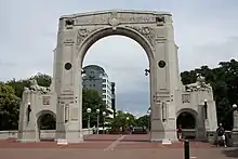 The Bridge of Remembrance was opened on Armistice Day, 11 November 1924 by the Governor-General, Admiral of the Fleet, Lord Jellicoe, who had previously laid the foundation stone on Anzac Day, 25 April 1923. The road through the bridge was removed and the short stretch between Oxford Terrace and Cambridge Terrace opened as a pedestrian precinct on 25 April 1977 (Anzac Day) by Captain Charles Upham, i.e. this stretch became a pedestrian precinct some five years before the establishment of City Mall.[28]