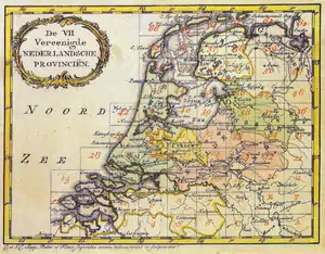 - Naauwkeurige kaart der Vereenigde Nederlanden tot opheldering der vaderlandsche historie in de zestiende eeuwe / C. Sepp delin[eavit] et fec[it] (Literally: Accurate map of the United Netherlands to clarify the national history in the sixteenth century / C. Sepp delin [eavit] et fec [it])
