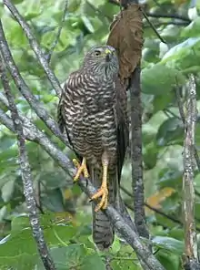 The taxon was described in 1889 by Lister as a full species, Accipiter natalis. Since then there has been debate as to whether its affinities lie with the brown goshawk or the grey goshawk (A. novaehollandiae). In the 2004 national recovery plan for the taxon it is treated as a subspecies of the brown goshawk, though the possibility has been raised of elevating it to the species level again.[1] Christidis and Boles (2008) treat it as a subspecies of the variable goshawk (A. hiogaster).[2] Here it is treated as a subspecies of the brown goshawk pending further study of its genome.