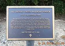 The Chunky Creek Train Wreck occurred on February 19, 1863, when a train crashed into the creek from a bridge damaged by heavy rain on the Southern Rail Road line between Meridian and Vicksburg, Mississippi.