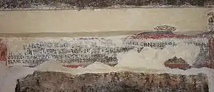 - The frescoes on the half-shaped vault in the naos, today almost destroyed, contained standing representations of Old Testament prophets, as shown by the small remains of the painting. In the southern half and in the eastern part, there are the remains of three standing figures. Comparing the size of the space in the extension, it can be assumed that there were ten figures on that side, that is, on both sides of the vault a total of over twenty.[10]