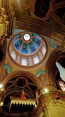 Colloquially known as the Cathedral of the East (Maltese: Il-Katidral tal-Lvant), the church bears an imposing facade and a large internal dome. The church houses various important pieces of art, such as The Martyrdom of St Catherine, an 18th century copy of the artwork by Mattia Preti in the Church of St Catherine in Valletta.