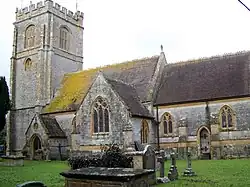 The stone building has hamstone dressing and clay tile roofs. It consists of a three-bay nave and three-bay chancel with a south porch. The three-stage west tower is supported by corner buttresses and has a small stair turret with a weathercock.[1] The tower has five bells the oldest of which was cast in the 17th century.[1][3]