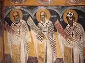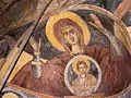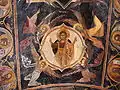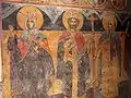 The frescoes were painted in 1598, as noted in the ktitor inscription in the western side of the nave, and were paid for through donations from wealthy villagers. The frescoes feature traditional medallions with depictions of Jesus Christ on the vault, friezes of medallions with saints and prophets and full-length portraits of saints under the arcade. Among the images of saints and martyrs is one of the oldest known depictions of Saint Sava and depictions of the sainted Pope Sylvester I and St Boniface, who are popular in Catholic art. There are a number of details with influence from Italian art – the moustaches of some of the soldiers, faces in profile in the Betrayal of Judas, the knight's banner on the lance of the centurion St. Longinus in the Crucifixion and others. With its new ideas and skilfully painted frescoes, the church is among the most valuable monuments from that period in the Balkans.