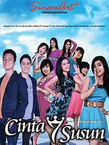 Cinta 7 Susun is an Indonesian soap opera musical comedy drama produced by SinemArt that aired daily on RCTI at 18:00pm (Indonesia West Time).[1] This is an autobiography that tells of the journey formation personnel 7icons because of where they lived in the Flats which will soon be evicted, through their stories[2] in the form of a fictitious (because it is not based on actual events). Cast is 7icons, Mischa Chandrawinata, Baim Wong, Raya Kohandi, Devi Noviaty, Gege Elisa, Shandy Ishabella, Gunawan Sudradjat, Cut Memey, Rico Tampatty, Minati Atmanegara, Mario Maulana as well as other supporting cast as well as some cameo actors who have often appeared on Indonesian movie or television series.