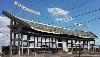 From 1974 to 1976 an expansion project raised the capacity to 50,612, including a 3,600-seat upper deck on the east sidelines. However, shortly after completion the project proved to be a public fiasco and potentially an architectural and engineering failure. On November 27, 1976, the first major game was held at the expanded stadium, a regular season matchup between Florida and Miami. During the game, the newly constructed upper deck noticeably swayed whenever fans stood up and cheered.[7] The deck vibrated, fences and railings shook and creaked, causing an unnerving sensation for the patrons sitting in those sections. The swaying and shaking was noticeable again about a month later during the 1976 Tangerine Bowl game. The swaying was so pronounced that some fans vowed never to sit in those seats again, while some refused to return to the stadium at all.[8][9] Before long, engineering evaluations, as well as legal investigations, uncovered numerous missteps, rushing, and cut corners in the stadium's design. While it was believed that the upper deck was structurally sound and met building codes, it nevertheless was deemed a failure. Additional problems included inadequate access to restrooms in the upper deck, gaps between the sections which required obstructive fences, and the fact that the upper deck was built at such an angle that it had poor sight lines.[10][11] Meanwhile, unsightly I-beams installed to hold up the upper deck now blocked seats in the lower deck that were previously unobstructed.[12][13]