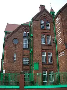 Floodgate School, Floodgate Street and Milk Street, Deritend, Birmingham, England. Now the Arts and Media Annexe of South Birmingham College. Formerly an 1890 Birmingham board school by architects