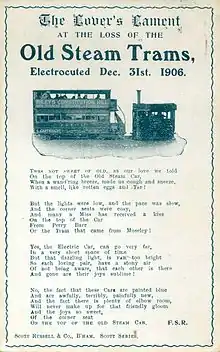 Postcard commemorating the ending of steam tram operations, on the last day of 1906