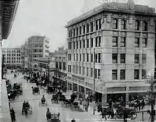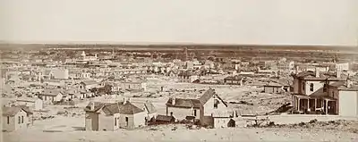 After the Civil War's conclusion, the town's population began to grow as white Texans continued to move into the villages and soon became the majority. El Paso itself, incorporated in 1873, encompassed the small area of communities that had developed along the river. In the 1870s, a population of 23 non-Hispanic Whites and 150 Hispanics was reported.[34] With the arrival of the Southern Pacific, Texas and Pacific, and Atchison, Topeka and Santa Fe railroads in 1881, the population boomed to 10,000 by the 1890 census, with many Anglo-Americans, recent immigrants, old Hispanic settlers, and recent arrivals from Mexico. The location of El Paso and the arrival of these more wild newcomers caused the city to become a violent and wild boomtown known as the "Six-shooter Capital" because of its lawlessness.[30] Indeed, prostitution and gambling flourished until World War I when the Department of the Army pressured El Paso authorities to crack down on vice (thus "benefitting" vice in neighboring Ciudad Juárez). With the suppression of the vice trade and in consideration of the city's geographic position, the city continued into developing as a premier manufacturing, transportation, and retail center of the U.S. Southwest.[35]